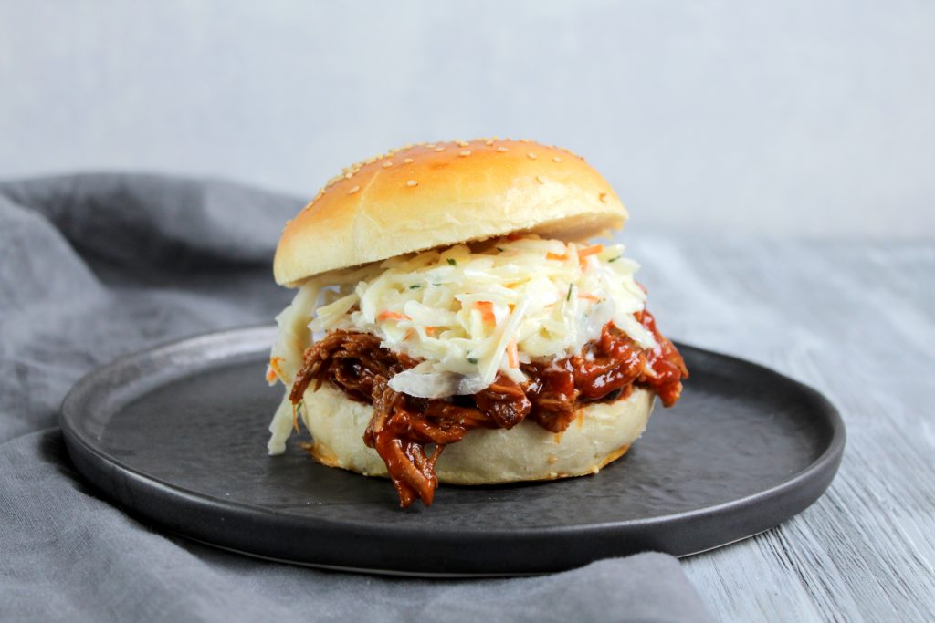 Slowcooker Pulled Pork Buns Mit Coleslaw Und q Sauce Krautsalat Fur Pulled Pork Pulled Pork Sosse Rezepte Slow Cooker