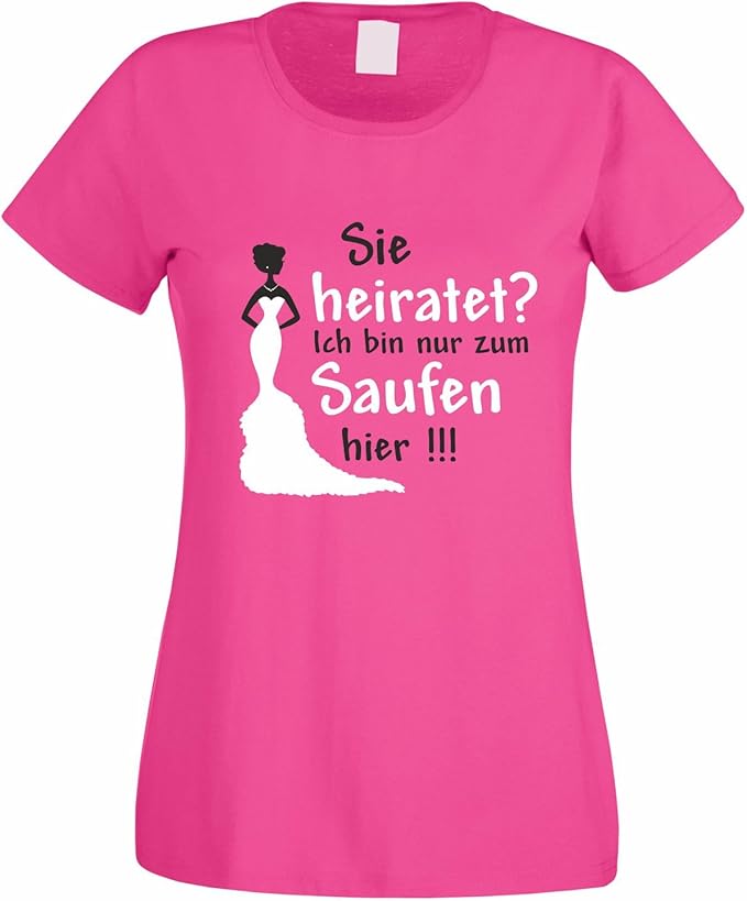 Junggesellenabschied Damen Girlie T Shirt Motiv Sie Heiratet Ich Bin Nur Zum Saufen Hier Amazon De Bekleidung