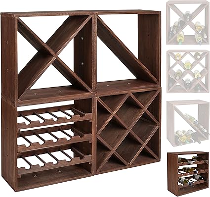 Ts Ideen 1x Weinregal Cube Dunkelbraun 24 Flaschen Flaschen Regal Holz Wein Stapelbar Keller Amazon De Kuche Haushalt