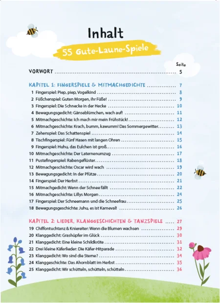 Kinder lieben Spiele Vorallem im Kindergarten werden viele Spiele gemacht Daher gibt es auch eine Vielzahl an KindergartenSpielen Besonders im gemeinsamen Kreis sind Kreisspiele, Spiellieder, Bewegungsspiele und Mitmachgeschichten sehr beliebt. Singen, Spielen und Musizieren als gemeinsames Gruppenerlebnis ist für die kindliche Entwicklung eine schöne und gleichzeitig wichtige Erfahrung Der gemeinschaftliche Spielkreis als festes regelmäßig wiederkehrendes Element unterstützt dabei die Gruppenbildung, während er gleichzeitig die soziale Kompetenz eines jeden einzelnen Kindes stärkt. Bei der Kindergarten Elfe findest du komplett ausgearbeitete Themenmappen für den Kindergarten Von Morgenkreis, Turnen, Bewegungsspielen, Rhythmik, Musik, Sprachförderung, Fingerspiele, Reime, kreative Bastelideen uvm ist alles mit dabei.