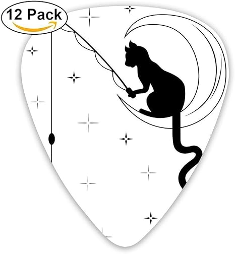 Katzenangeln Mit Dem Langen Schwanz Der Auf Dem Mond Unter Sternenklarem Himmel Spass Skizze Art Decorative Guitar Picks 12 Pack Sitzt Fur E Gitarre Akustikgitarre Mandoline Und Bass Amazon De Musikinstrumente