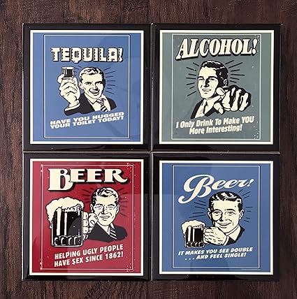 Celycasy Untersetzer Keramik Lustige Und Lustige Spruche Fur Tequila Alkohol Und Bier 4 Stuck Amazon De Kuche Haushalt