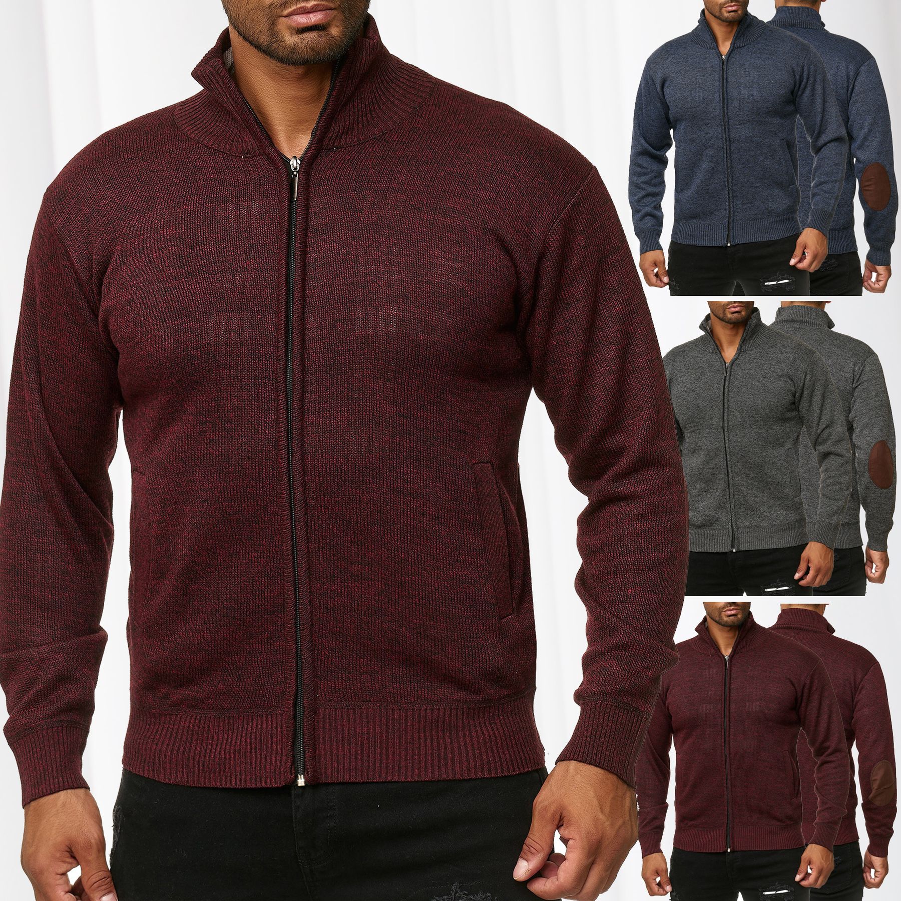 Herren Strickjacke Stehkragen Weste Pullover Ellenbogen Patches Reissverschluss Ebay