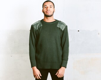 Manner Grun Pullover V Ausschnitt Pullover Schulter Ellbogen Patches Army Military Oliv Ebay