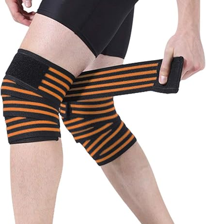 Kompressions Elastizitat Kniebandage Wrap Gewichtheben Kniebeugen Fitness Gurt Patella Bein Oberschenkel Wade Schienbein Unterstutzung Gym Basketball Sport Tape Schutz Arthritis Sehnenentzundung Schmerzlinderung Einheitsgrosse 1 Pair Blackorange