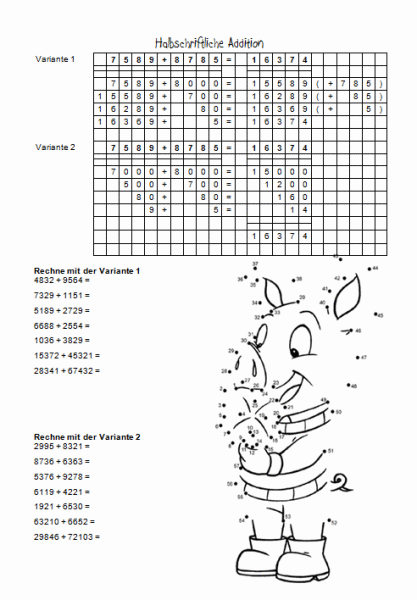 Halbschriftliche Addition Kostenlose Arbeitsblatter