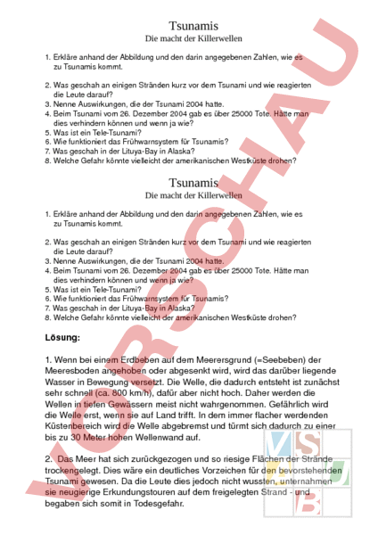 Geografie Arbeitsmaterialien Tsunami 4teachers De