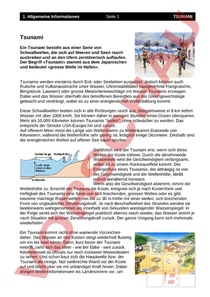 A tsunami can kill or injure people and damage or destroy buildings and infrastructure as waves come in and go out A tsunami is a series of enormous ocean waves caused by earthquakes, underwater landslides, volcanic eruptions, or asteroids Tsunamis can Travel 30 miles per hour with waves feet high Cause flooding and disrupt transportation, power, communications, and the water supply. Arbeitsblatt 1 / Kopiervorlage Name Tsunami in Japan erreicht uns spätestens nach fünf Minuten und minütlich kann man den Börsenkurs verfolgen Kaum ein Kleidungsstück in deinem Schrank. Tsunami Katastrophenvor und nachsorge Medien & Material Tsunamiexe / Tsunamihtml Didaktischer Kommentar Musterlösungen Hintergrundinformation Projektinformation Naturkatastrophe visueller Vergleich von Satellitenbildern Klassifikation Change Detection Arbeitsblatt Hausaufgabentext Naturgefahr Erdbeben.
