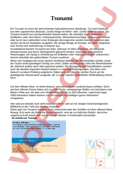 Arbeitsblatt Tsunami Geographie Geologie Tektonik Vulkanismus