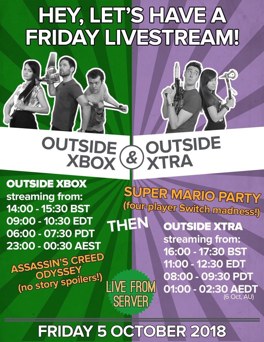 Outsidexbox Streaming Tomorrow Come Join Us As We Play Assassin S Creed Odyssey And Then Jump Onto Outsidextra S Stream For Some No Doubt Extremely Competitive Super Mario Party T Co Vgel85eznz