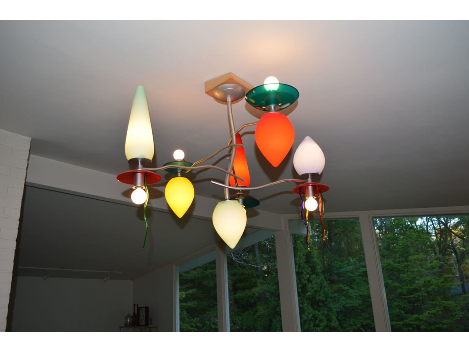 Pambianco awards Artemide for sustainability Read all the News Artemide Journal Gitanjali is the Kid of the Year Gitanjali is the Kid of the Year Read all the News Artemide Journal Artemide lights up Green Pea Artemide lights up Green Pea Discover all Projects Projects Uffici Giuntini Uffici Giuntini Highlights most viewed 01 02. Andrea Anastasio for Artemide "Giocasta" Memphis Style Suspension Light Lamp **TRUE VINTAGE** **I included a couple stock photos so you could see what it looks like lit up** Made in the 80's This is the large version All blown glass is in good condition. Sold Giocasta hanging lamp by Andrea Anastasio for Artemide, 1980s #.