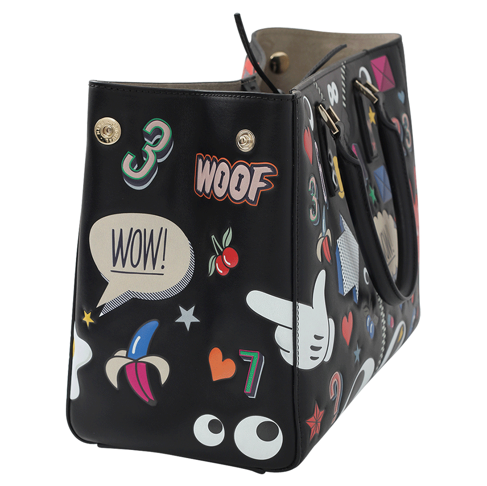 Anya Hindmarch Ebury All Over Stickers Maxi Featherweight Black Leather Tote Bag