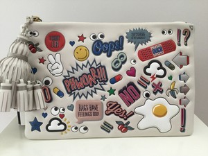 Anya Hindmarch All Over Sticker Wink Georgiana Clutch Bag In Chalk Leather Bnib Ebay