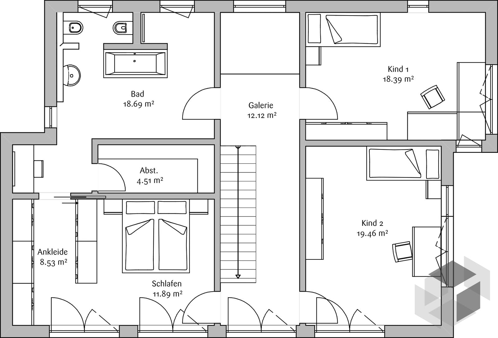 Passivhaus Grundriss Mit Galerie 4 Zimmer Erdgeschoss Obergeschoss Massivhaus Schlusselfertig Bauen Ideen Einfamilienh Haus Grundriss Haus Einfamilienhaus
