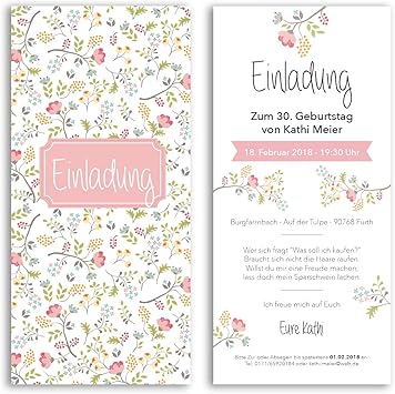 10 X Einladungskarten Geburtstag Blumen Pink Rosa Eintrittskarte Einladungen Amazon De Burobedarf Schreibwaren