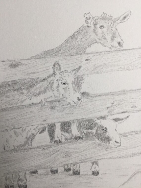 Original Bleistift Zeichnung Ziegen Am Zaun 9 X 12 Ein Unikat Etsy