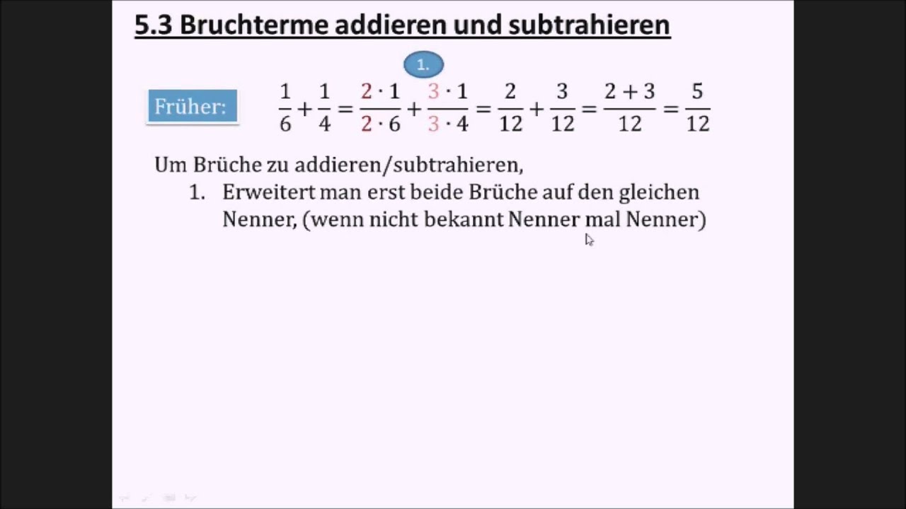 8 5 3 Bruchterme Addieren Und Subtrahieren Youtube