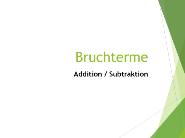 Um Bruchterme addieren oder subtrahieren zu können, musst du sie zunächst gleichnamig machen Du machst Bruchterme gleichnamig, indem du sie auf einen Hauptnenner erweiterst Der Hauptnenner entspricht dem $\text{kgV}$ der Nenner der Bruchterme Du erweiterst einen Bruchterm, indem du Zähler und Nenner mit der gleichen ganzen Zahl multiplizierst. Hallo JoBa, erstmal sorry, dass es so lange gedauert hat, bist du eine Antwort bekommen hast Ich habe sehr viel zu tun gehabt und obwohl ich es gesehen habe, vergessen dir zu antworten. Bruchterme 2 Ein Bruch stellt eine reelle Zahl dar In gewisser Weise kann man sagen, dass die Zahl, die ein Bruch darstellt, das Ergebnis einer Division ist Aber Vorsicht!.
