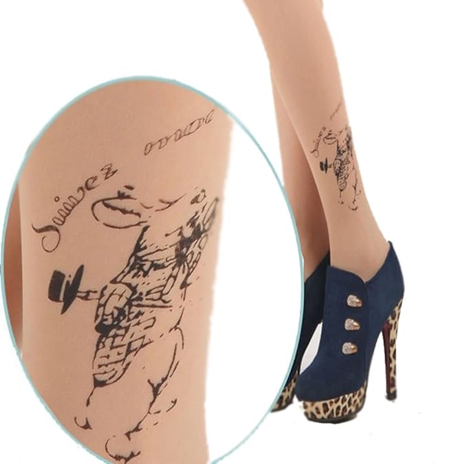 Westeng Strumpfhose Damen Samt Strumpfe Elasthan Strumpfhose Dunne Strumpfe Hautfarbe Tattoo Kleines Madchen Druck Design Amazon De Bekleidung