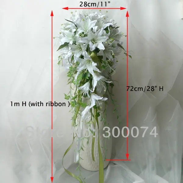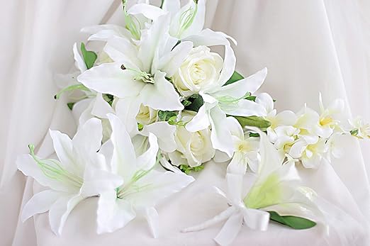 Amazon De Mamamoo Weisse Lilie Wasserfall Hochzeit Bouquet Tropfen Romantische Lange Brautstrauss