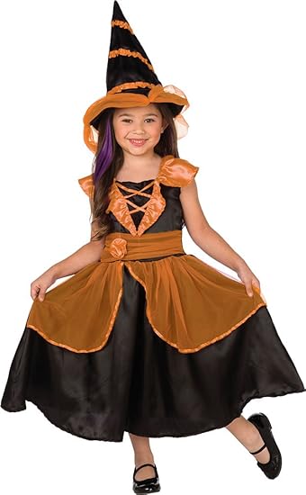 Karneval Klamotten Hexenkostum Kinder Madchen Mit Hexenhut Zauberhaftes Halloweenkostum Orange Schwarz Inkl Hexenhut Halloween Amazon De Spielzeug
