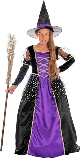Magicoo Prinzessin Hexenkostum Kinder Madchen Lila Schwarz Gold Kleid Hut Gr 110 Bis 140 Halloween Hexe Kostum Kind 110 116 Amazon De Spielzeug