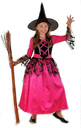 Magicoo Fledermaus Hexenkostum Kinder Madchen Pink Schwarz Hexenhut Schickes Halloween Kostum Hexe Kind 134 140 Amazon De Spielzeug