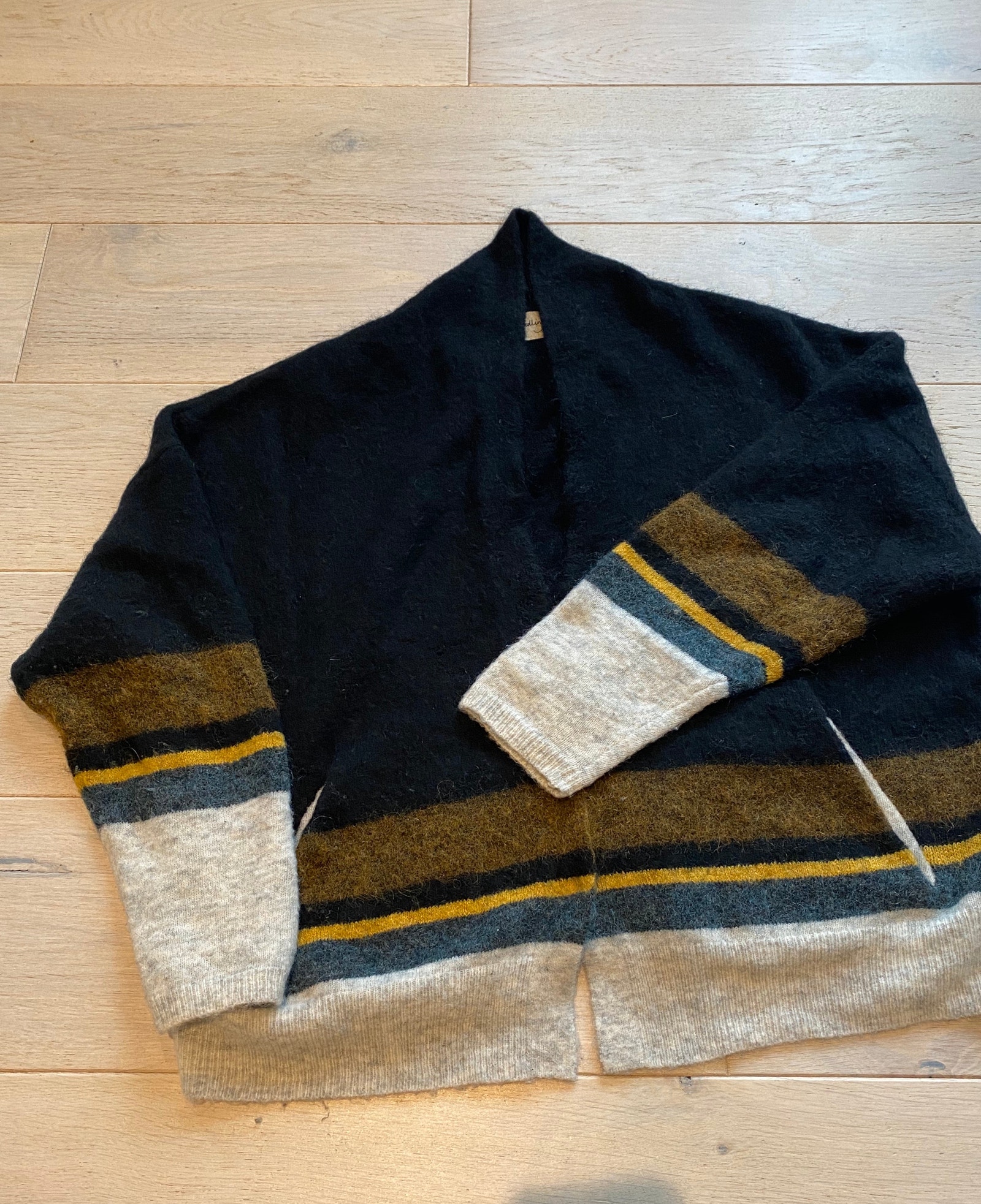 Sol og Classic cardigan – det bliver da ikke bedre 😉 Ahhhhh – SOL og marts måneds cardigan – Sanne Fjallands Classic er klar – lige til at nyde en dejlig forårsdag i haven – der blæser en møgkold vind, men overdrivelse siges at fremme forståelsen 😉 Den er petroleumsblå og farven er desværre ikke helt korrekt gengivet, men følg linket til Sannes side, så kan du se den. Slåomsjal (wrapshawl) med cashmere mørk petroleumsblå 499,00kr Default Title PLAID MED CASHMERE LYST SANDFARVET MØNSTER 599,00kr Default Title Udsolgt PLAID MED CASHMERE GRÅT MØNSTER 599,00kr Udsolgt CARDIGAN m kabelstrik og knapper CASHMERE/MERINOULD Lilla 499,95kr. Fantastisk Nolona cardigan fra Philosophy blues original i petroleumsblå Cardiganen er gennemknappet med søde knapper, den er rund i halsen og har ribkant i hals, på ærmer og i livet Materialer 70% uld og 30% cashmere.