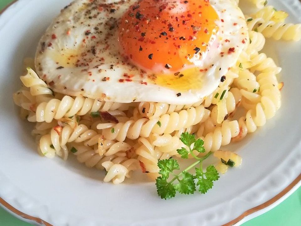 Mit einem Spiegelei obendrauf schmecken viele Gerichte gleich viel besser Das sind unsere Top 5 SpiegeleiRezepte für Flammkuchen und Co. Spiegelei mit nudeln Wir haben 18 tolle Spiegelei mit nudeln Rezepte für dich gefunden!. Die Möhren mit dem Sparschäler in dünne Streifen schneiden,die Jagdwurst schneidenDas Öl erhitzen Knoblauch und Peperoni andünsten die Möhren dazugeben und alles kurz durchschwenkennun die Wurst und den Schinken dazugeben und anbraten lassen nun die Nudeln und die Tomaten dazugeben und alles einschmurzeln lassen bis sich alles schön miteinander verbunden hatDen Pfanneninhalt in zwei.