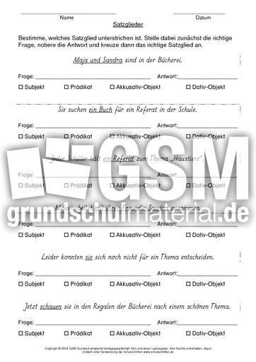 Satzglieder Bestimmen 4 Subjekt Pradikat Dativ Und Akkusativobjekt Mit Losungen Unterrichtsmaterial Im Fach Deutsch Satzglieder Subjekt Pradikat Objekt Lernen