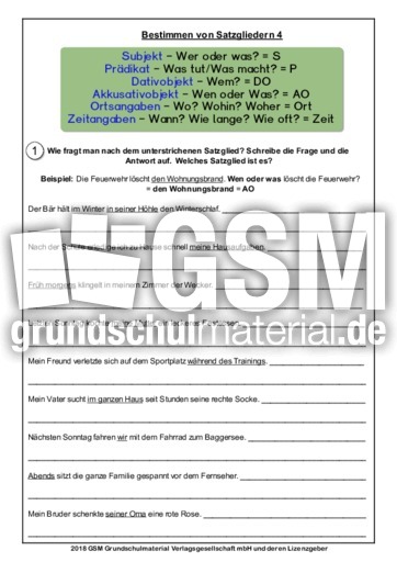 Satzglieder Bestimmen Grundschule