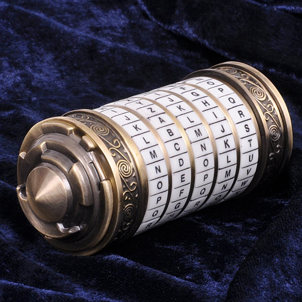 If you'd like pur. The Da Vinci Code Cryptex 11 Scale Prop Replica From the Manufacturer A working replica of The Da Vinci Code Cryptex as featured in the motion picture Opens with password you set Store your notes, poems, jewelry, keys or other valuables Diecast with an aged finish Comes with box as shown. "an apt title for this device" since it uses "the science of cryptology to protect information written on the contained scroll or codex " (p 199 of the novel).