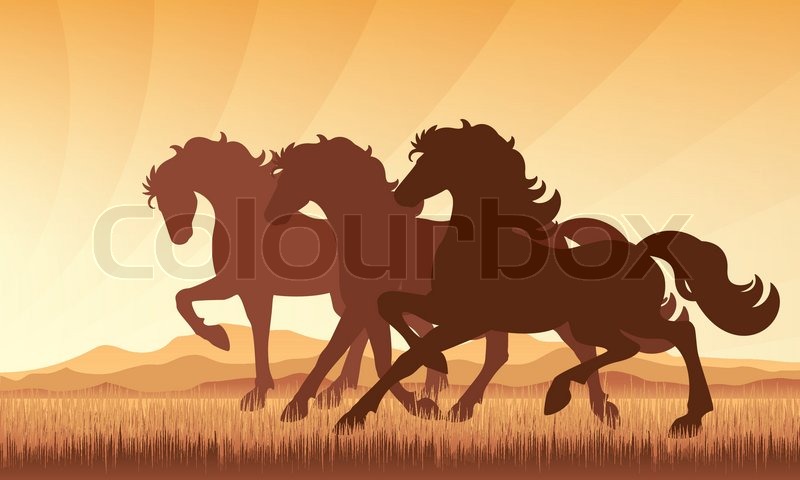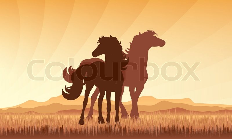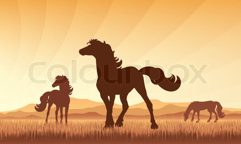 Pferde Im Feld Auf Sonnenuntergang Stock Vektor Colourbox