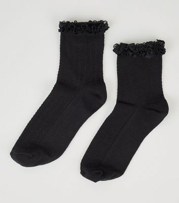 Schwarze Knochelhohe Socken Mit Zopfmuster Und Ruschen New Look