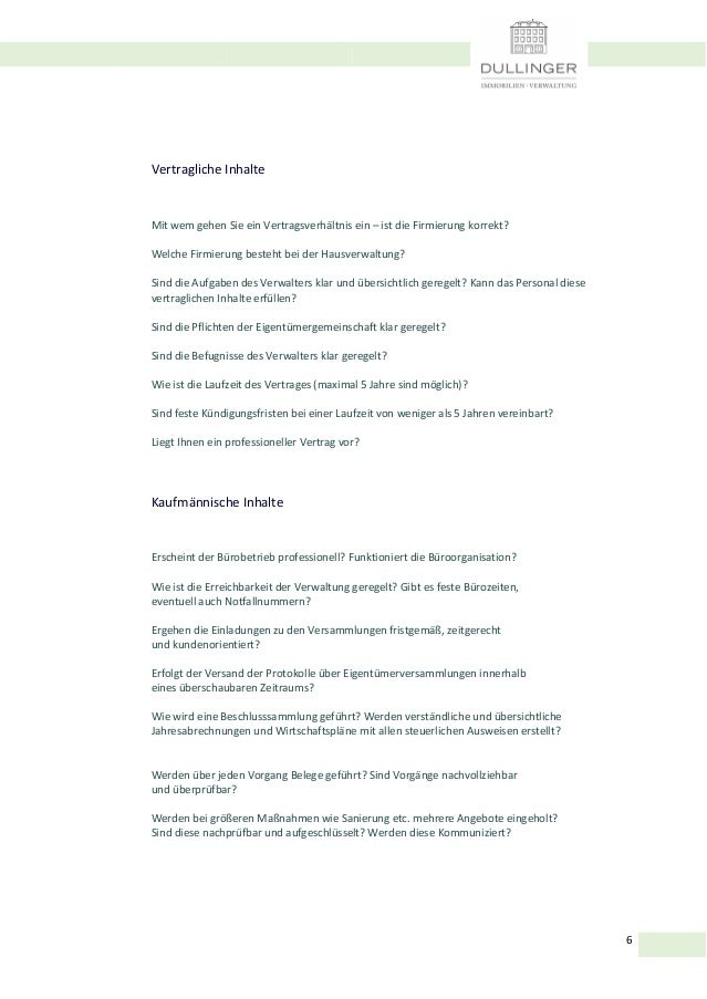 Dullinger Immobilien Verwaltung Checkliste Hausverwalter Suche