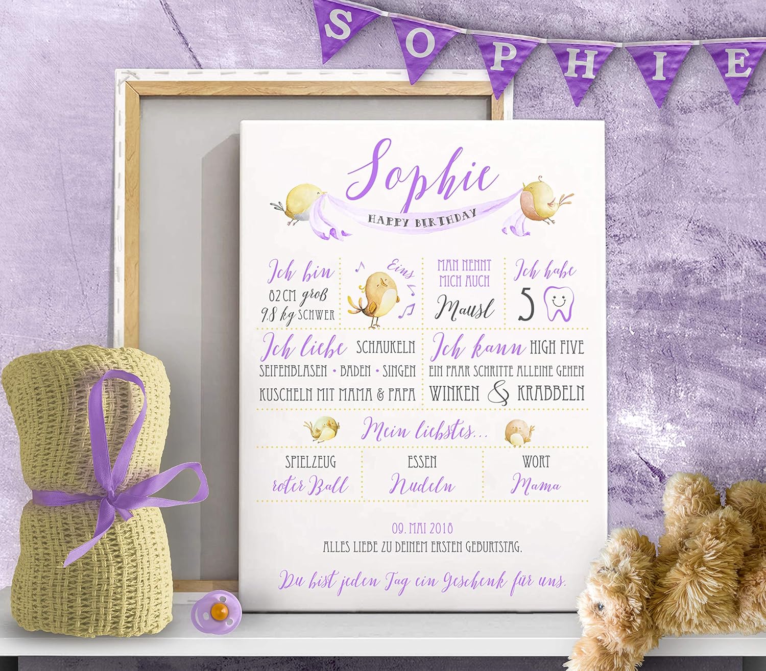 Geschenk Babys 1 Geburtstag Individuelle Meilensteintafel Zum Ersten Geburtstag Papier Leinwand Amazon De Handmade