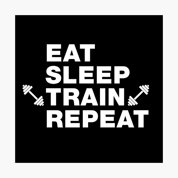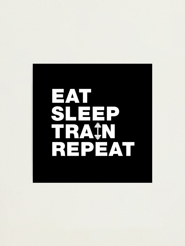 Eat Sleep Train Wiederholen Lustige Gym Workout Training Muskeln Spruche Witze Zitate Fotodruck Von Funnysayingstee Redbubble