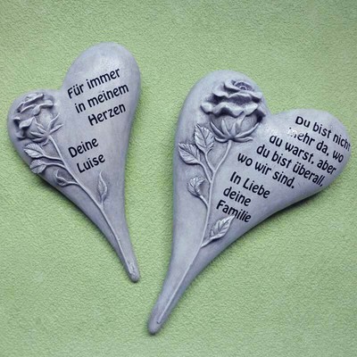 Grabschmuck Herz Mit Rose Grau In 2 Grossen Mit Individueller Beschriftung Ebay