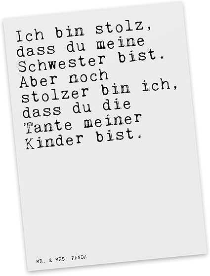 Postkarte Ich Bin Stolz Dass Du Meine Schwester Bist Aber Noch Stolzer Bin Ich Dass Du Die Tante Meiner Kinder Bist