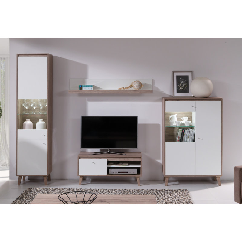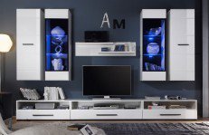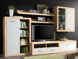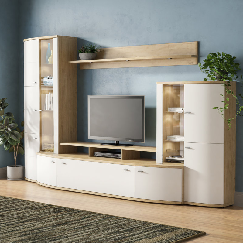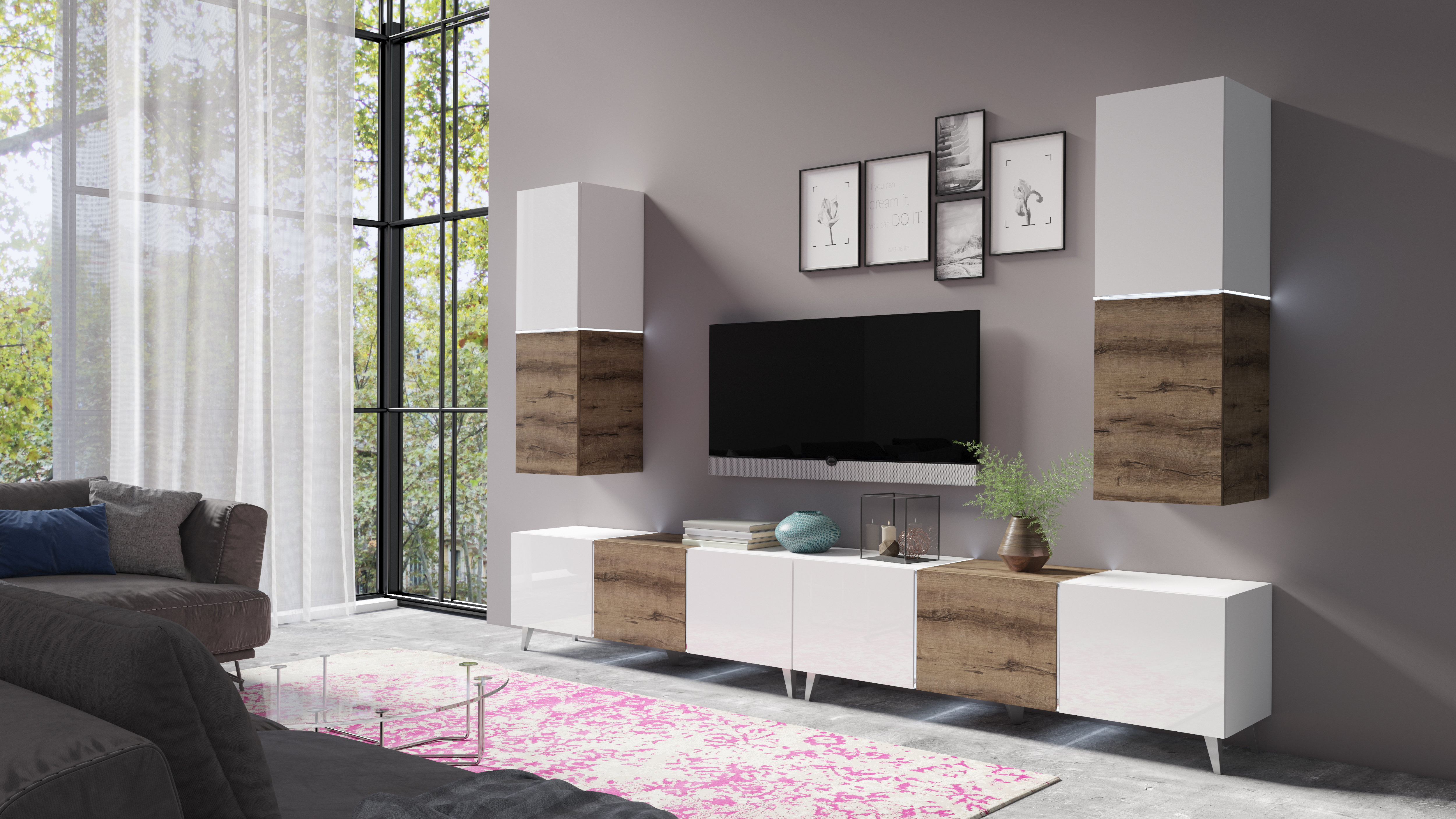 Wohnkombination Reddy In Weiss Hochglanz Eiche Wohnwand Weiss Hochglanz Wohnwand Hangend Wohnzimmerschranke