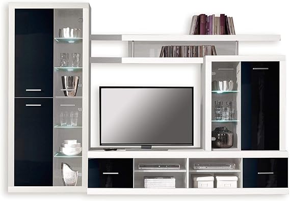 Unbekannt Wohnwand Can Can 4 Lux Weiss Schwarz Glasfronten Amazon De Kuche Haushalt