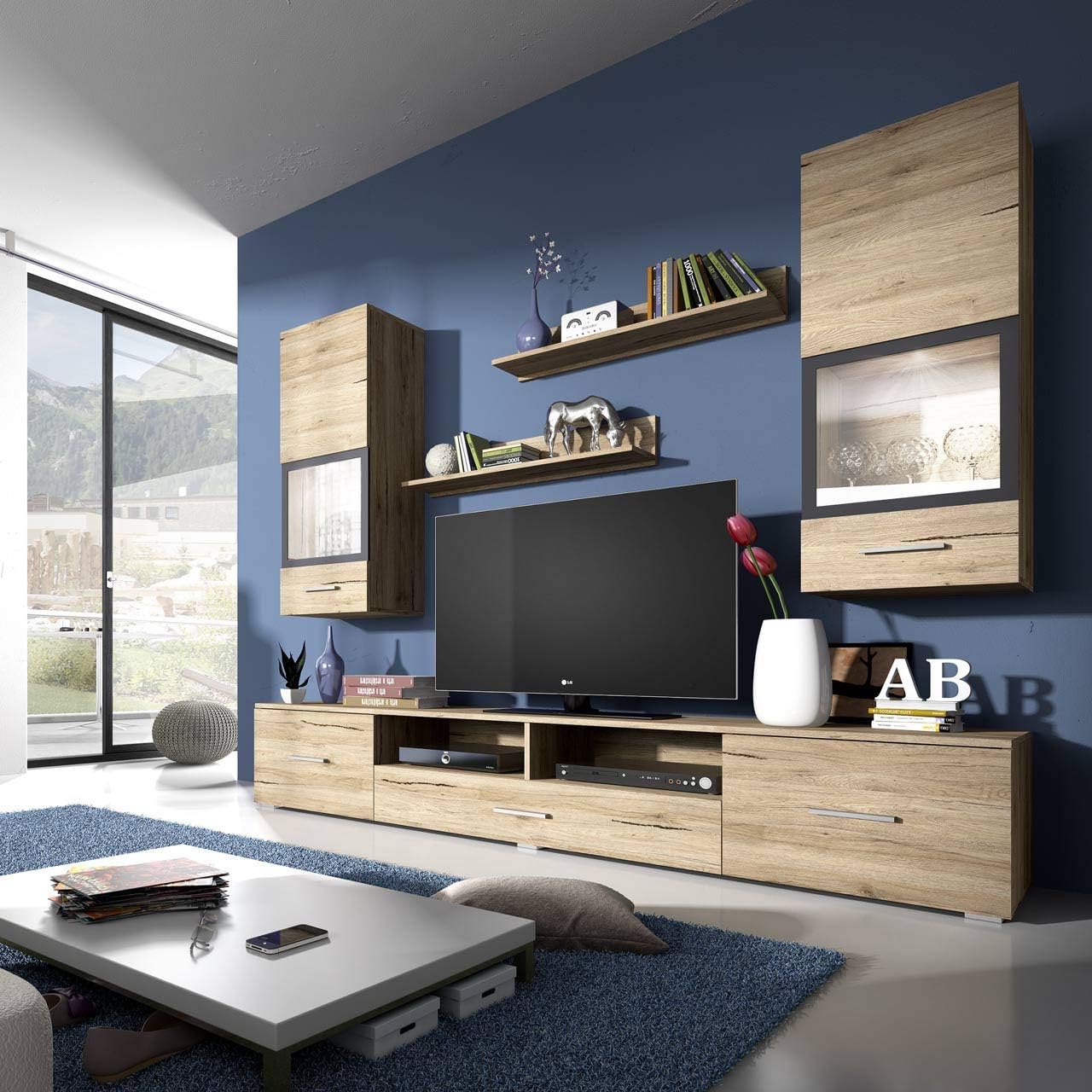 Stella Trading Can Can 5 Wohnwand Anbauwand Holzdekor Sonoma B H T 284 X 195 X 45 Cm Amazon De Kuche Haushalt