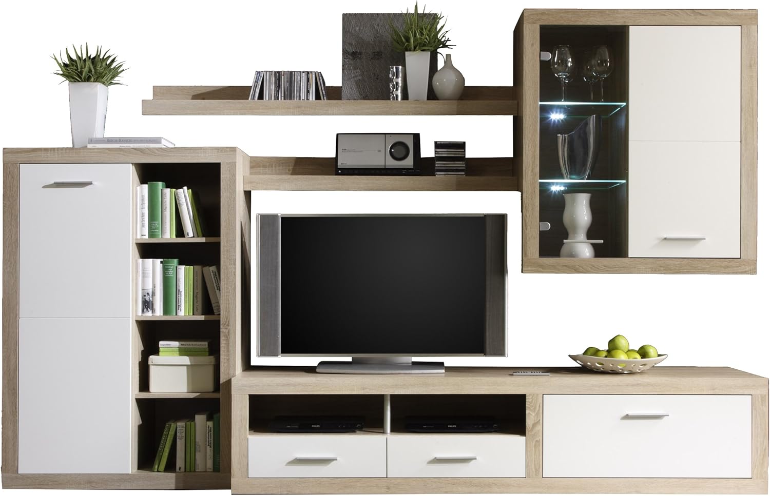 Wohnwand Can Can 1 Sonoma Eiche Weiss Inklusive Led Beleuchtung Ebay
