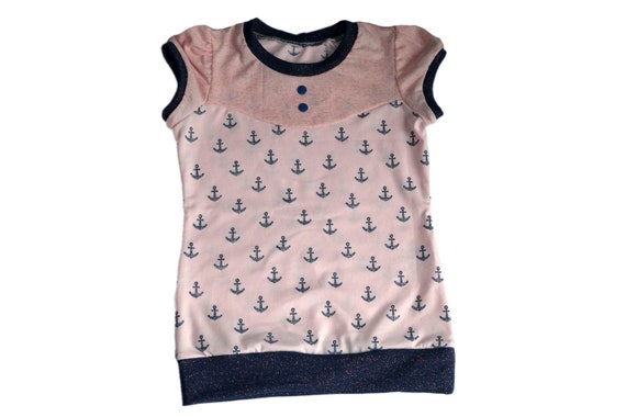 T Shirt Anchor Glitter Size 122 128 Pink Dark Blue Etsy
