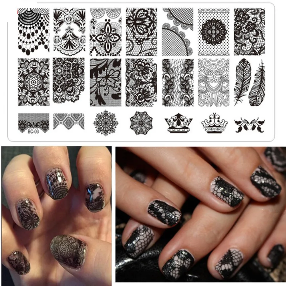 Spitze Nagel Platte Charme Dame Vorlage Spitze Design Muster Bild Stanzen Stahl Platte Nail Art Diy Nagel Decoation Nail File Buffer Diy Flynail Art Diy Aliexpress
