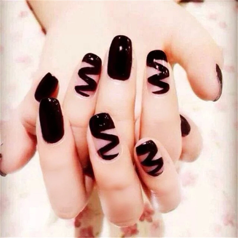24 Stucke Chic Welle Muster Einfarbig Nail Art Falsche Nagel False Nails Nail Falsecolored False Nails Aliexpress