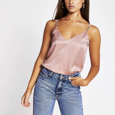 Pink Trim Cami Top River Island