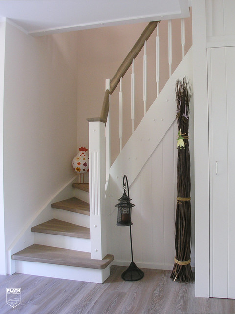 Steps and handrail within the Douglas fir white limed (by the client himself). Treppenbau Plath – Im Norden zu Hause Das traditionelle Familienunternehmen Plath überzeugt, mittlerweile in zweiter Generation, mit langjähriger Erfahrung im modernen Treppenbau Mit nun schon an die 30 Jahre Erfahrung, hat sich Treppenbau Plath zum Spezialisten für Innentreppen im gesamten norddeutschen Raum entwickelt. Treppenbau Plath steht Ihnen mit langjähriger Erfahrung als kompetenter Partner bei all diesen Detailfragen und Planungsmöglichkeiten zur Seite Die Vielfältigkeit der Konstruktion, Materialauswahl und Gestaltung lässt Ihre Treppe in Verbindung mit unserem Knowhow zu einem individuellen Highlight werden.