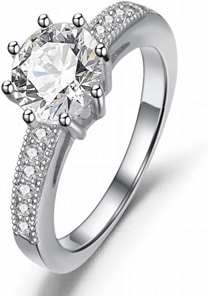 J Z Weiblicher Klassischer Beilaufiger Zirkon Runder Flacher Ring Kupfer Uberzogener Weisser Goldring Acht Simulations Diamant Ring Antrag Japanischer Und Koreanischer Silberner Ring Silber 6 Amazon De Sport Freizeit