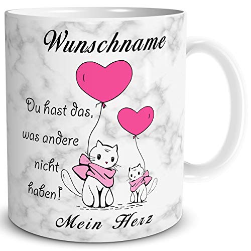 Triosk Tasse Liebe Lustig Spruch Mit Name Personalisiert Mein Herz Valentin Katzenmotiv Liebestassen Verliebte Paare Amazon De Kuche Haushalt